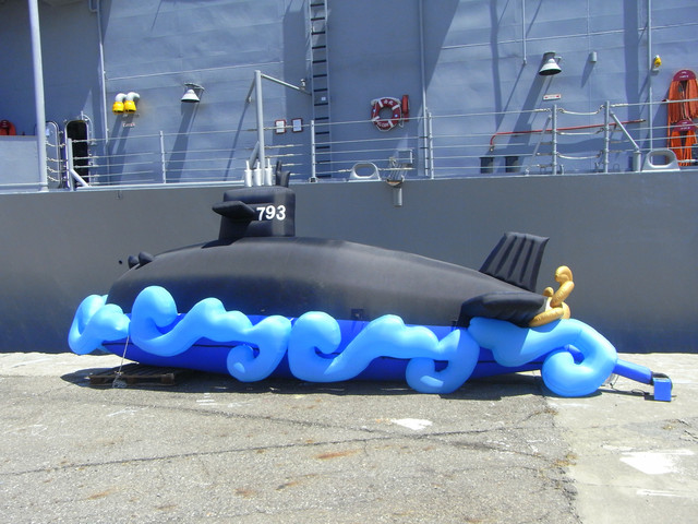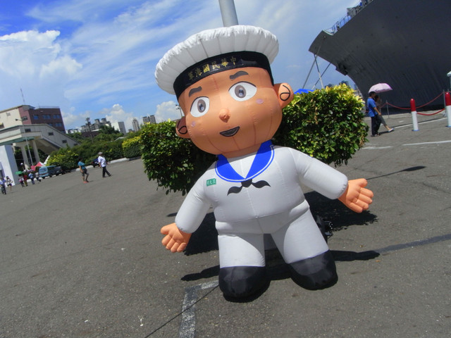 這次很榮幸能應邀參加本次活動(其實是自己跑去的),首先就是很遺憾沒看到原先想看的老古董-茄比(海獅級)潛艇,到場才知道潛艇只有前一天在左營軍港有開放,但至少海軍很誠意的放了比較年少的劍龍級-海龍艦充氣娃娃讓人拍照。